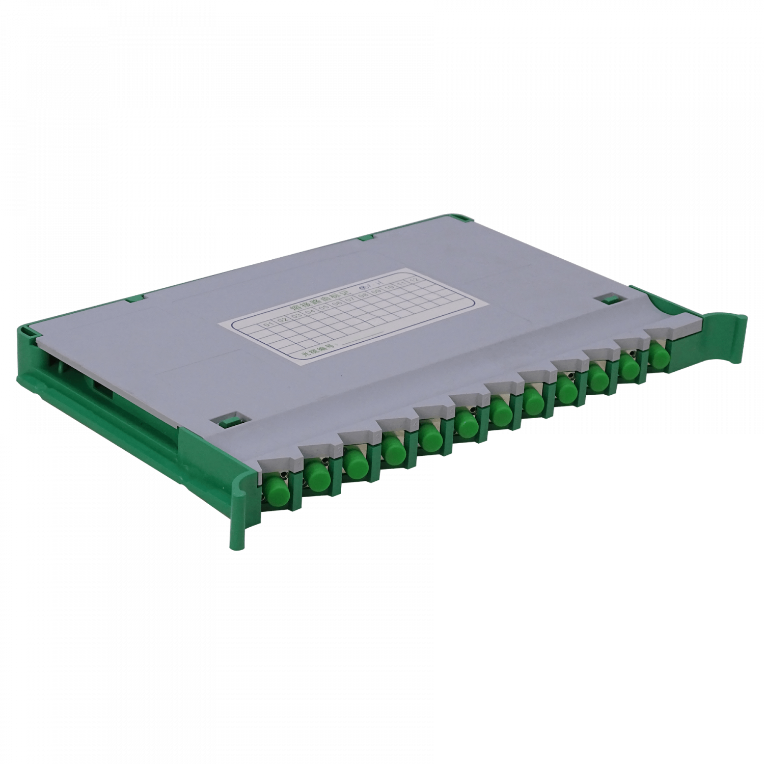 Bandeja 12-LC/APC para Cabecera tipo ODF incluye pigtails-SM y coplas