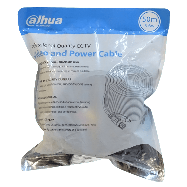 DAHUA 50mt BNC-M/M Plug-M/H Coaxial CCTV 5,5×2,1mm Cable PFM942I-50-5
