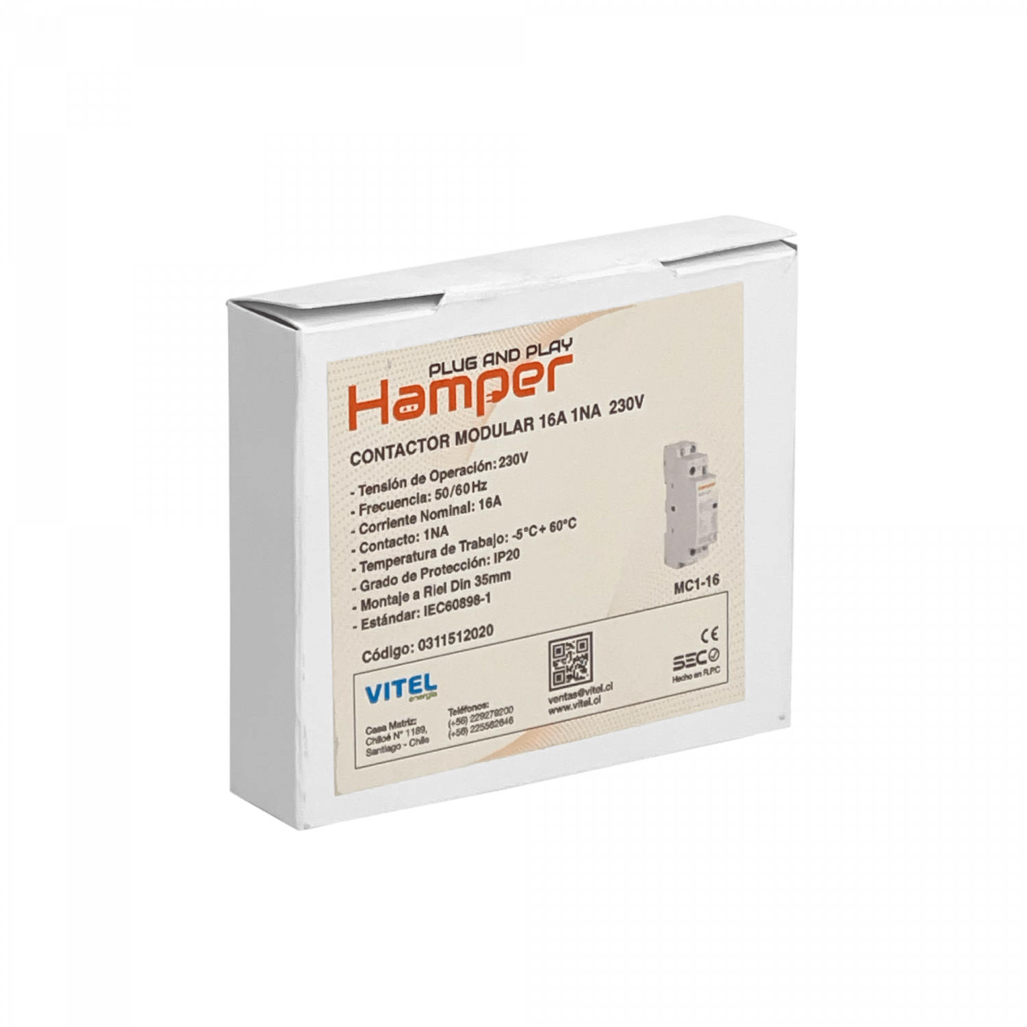 Sé el primero en valorar “HAMPER 16A Contactor Monofasico Modular 230/400V 1NA IP20 Certif-SEC”